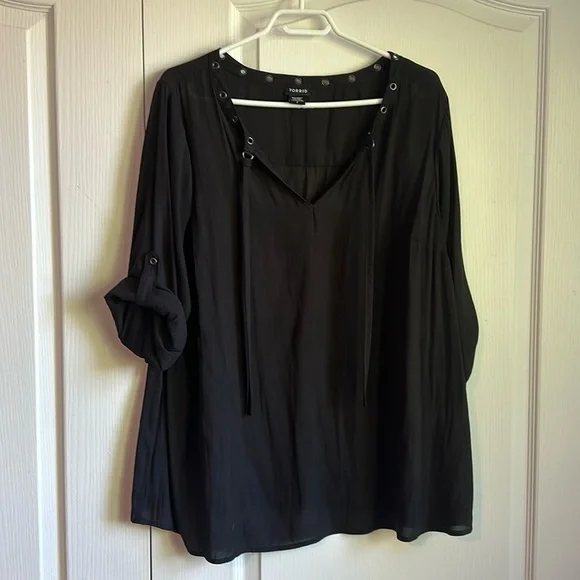 Torrid Blouse Very light weight Rolled sleeves V neck Grommet detail around neck
