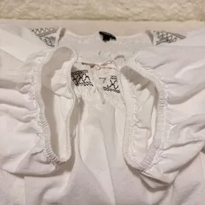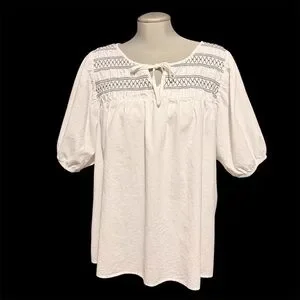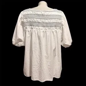 Chic white blouse featuring stretchy ruch details. Ideal for versatile styling. Size 2X
