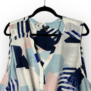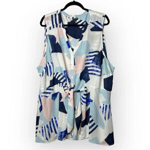 Torrid Blue Geo Peplum Georgette Button-Front Tie-Front Blouse 4