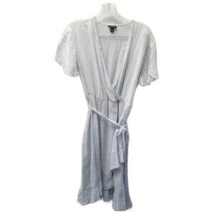 Torrid Blue & White Striped Challis Faux Wrap Dress with Belt.
