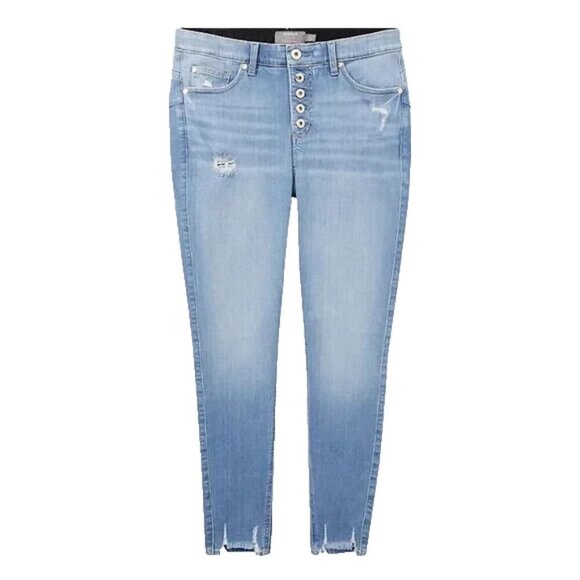 Torrid Bombshell Skinny Womens Plus 24R Jeans Light Wash High Rise Distressed Button Fly Raw Hem