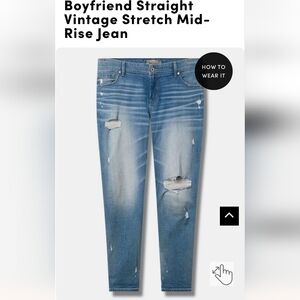 Torrid Boyfriend Straight Vintage Stretch Mid-Rise Jean plus size 26 short