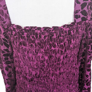 Torrid Burnout Velvet Top Womens 3X Wine Smocked Cropped Whimsygoth Puf…
