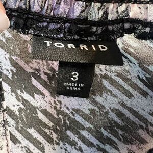 Torrid Chiffon Blouse Womens Size 3X Houndstooth High Neck Purple Sheer Smocked Flutter Sleeve