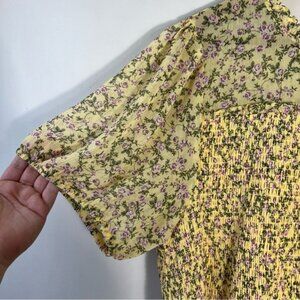 Torrid Chiffon Ruffle Mock Neck Smocked Crop Top Size 3X In Tinted Roses yellow