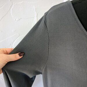 Torrid Cinch Front Top Rib Slate Ribbed Longline Charcoal V-Neck Stretch Tee