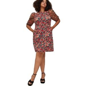 Torrid Cocktail Dress Mini Scuba w/ Pockets Crepe & Organza Puff Sleeve Floral