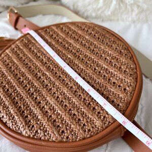 Torrid Cognac Faux Leather & Straw Round Belt Bag EUC (size 1)