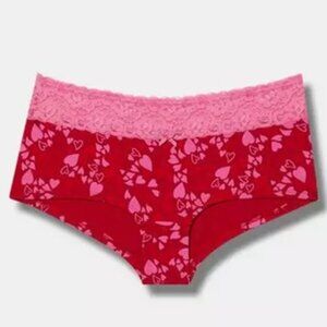 Torrid - Cotton Mid-Rise Lace Trim Boyshort Panty in Wild Hearts Pink & Red