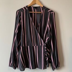 Torrid Crepe Surplice Pink & Grey Wrap Top Size 2X