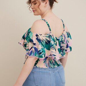 Torrid Crinkle Gauze Cold Shoulder Ruffle Top