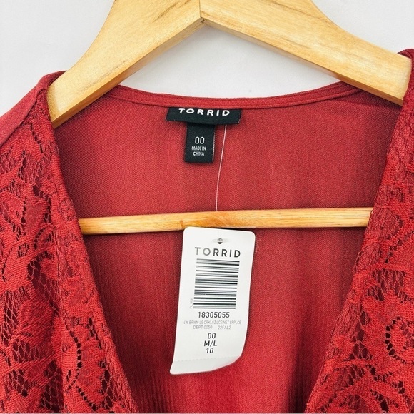 Torrid Crinkle Gauze Lace Inset Surplice Top - Madder Brown