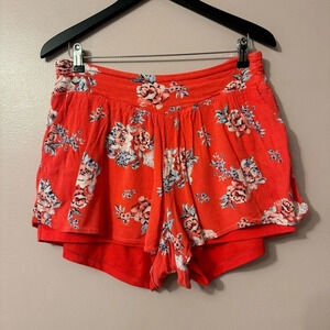 Torrid Crinkle Gauze Shorts Coral / Red Floral High Waisted Pull On Size 0