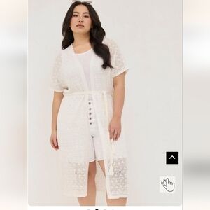 Torrid Crochet Duster Short Sleeve Tie Waist Sweater size 0x or 1/2x or 3/4x New with tags