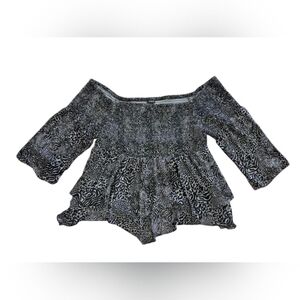 Torrid EUC Off The Shoulder Baby Doll Top Animal Print Grey Black Plus Size Size 5