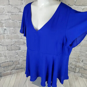 Torrid Electric Blue Georgette Blouse Size 3 Flutter Sleeve VNeck Feminine