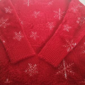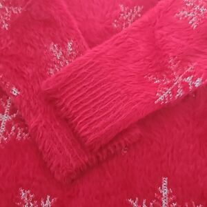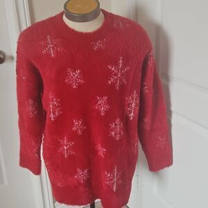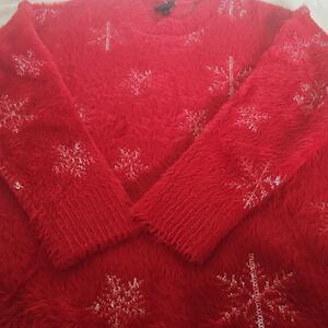 Torrid Eyelash Lurex Crew Pullover Sweater With Snowflake Red & Silver 1X 14-16