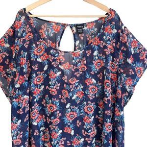 Torrid Floral Sheer Scoop Neck Keyhole Blouse