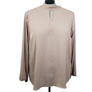 Torrid Georgette Mock Neck Blouse Taupe Size 3X Long Sleeve Work Wear St…