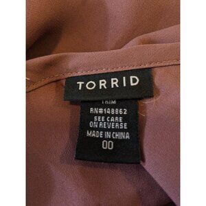 This Torrid Georgette Swing Cami Top is a must-have for any bohemian or hippie themed wardrobe. The dusty pink color and crochet lace accents make it perfect for the summer, fall, or spring seasons. The relaxed fit and sleeveless design make it comfortable and easy to wear for any casual occasion. The V-neckline and pullover closure add to the simple yet stylish design. This tank top is made for women and is a regular fit size 10. The solid pattern and coquette style make it a versatile addition to any outfit. Get ready to turn heads with this Torrid Georgette Swing Cami Top!Where this pretty top as a shell under blazers or cardigans in the cooler months.