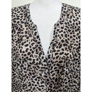 Torrid Harper Georgette Blouse Womens Plus 3X Leopard Print Roll Tab Split Neck