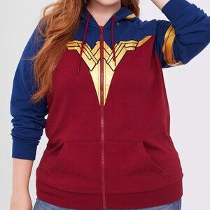 🆕️ Torrid Her Universe DC Comics Wonder Woman Red Blue Metallic Gold Zip Hoodie
