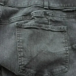 Very gently worn, showing only slight wear on the cuffs , the back of one cuff has a fold mark in the denim. 7% polyester and 2% spandex gives these denim feeling jeans some stretch and flex.