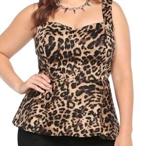 Torrid Leopard Print Sleeveless Back Cut Out Peplum Blouse Tank Size 4X
