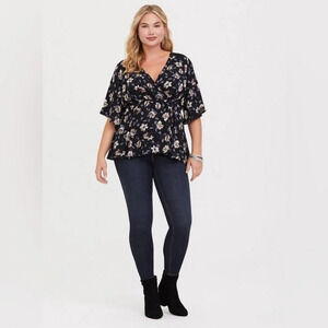 Torrid Lily Babydoll Georgette Surplice Blouse Womens Size 1 Floral