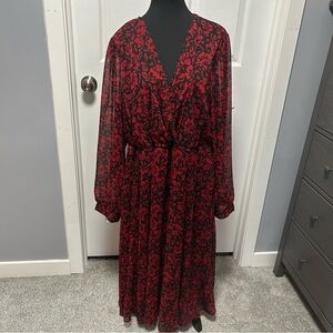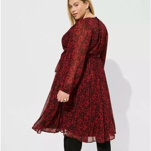 Torrid - Midi Crinkle Chiffon Surplice Balloon Sleeve Dress