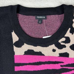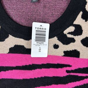 Torrid Mixed Animal Print Pullover Sweater Plus Size 4 4X 26 Cheetah Pink Blue