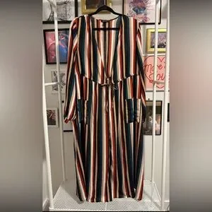 Torrid Georgette Striped Long Sleeve Duster with pockets and flattering adjustable tie waist. Torrid Size 2