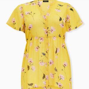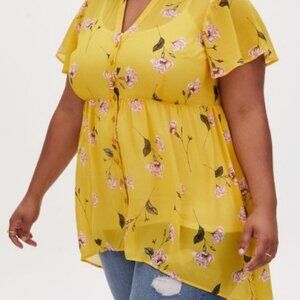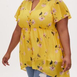 Torrid *NWOT Lexie Babydoll Chiffon Tunic In Floral Yellow - Size 0