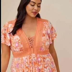 Torrid NWT Lace Eyelet Coral Boho Cottegecore Maxi Dress