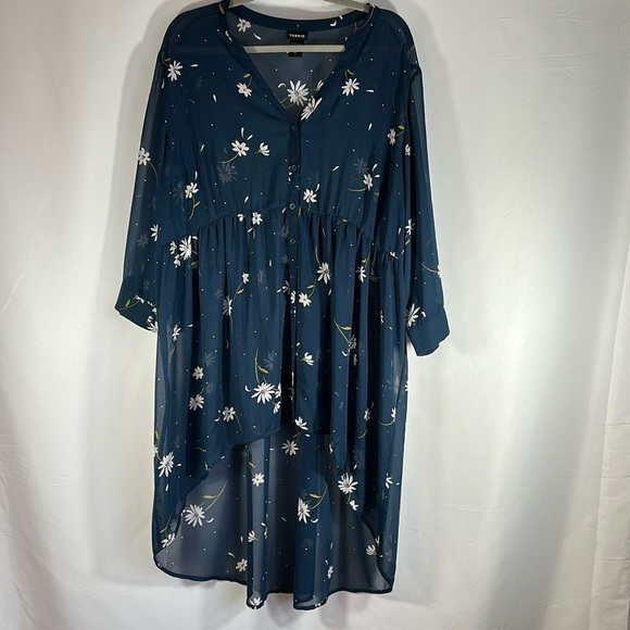 Torrid Navy Blue Floral Lexie Chiffon Babydoll Hi Lo Tunic Top