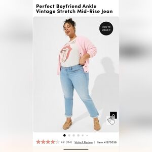 Torrid Perfect Boyfriend Ankle l Stretch Mid-Rise Jean Size 14 or 24 NWT