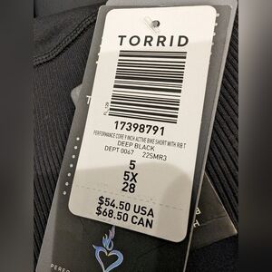 Torrid Performance Core 9 Inch Active Bike Short With Rib Trim, Black 5x. New with tags.