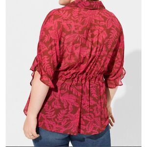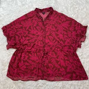 Torrid Pink Floral Chiffon Dolman Button Up Short Sleeve Plus Size 4X