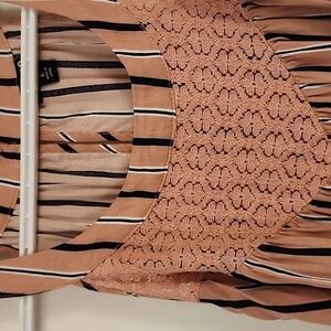 Torrid | Pink Striped High Neck Challis Ruffle Lace Tank Top
