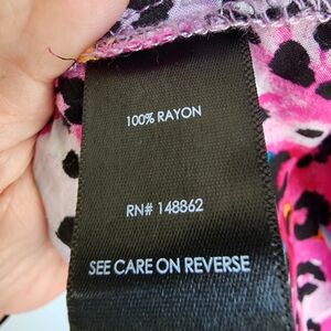 This relaxed fit blouse has such a fun colourful print. It has covered Buttons down the front. 100% Rayon.