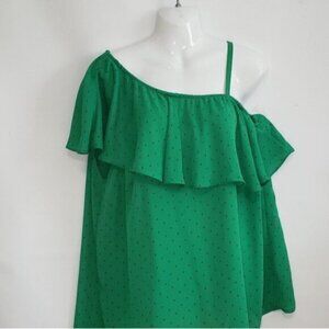 Torrid Polka Dot Georgette One Shoulder Top Green Size 1X Ruffle