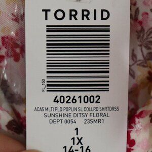 Torrid Poplin Collared Shirt Dress Sunshine Ditsy Floral Size 1X (14-16) NWT