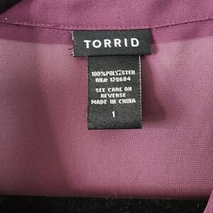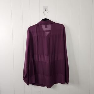 Torrid semi sheer dark purple blouse. Button down with collar.
