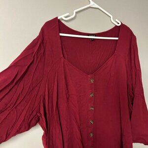 Torrid Red Button Down 3/4 Sleeve Blouse