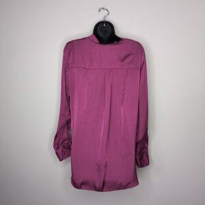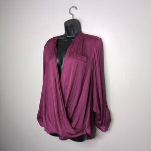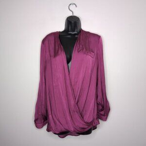 Torrid Satin Surplice Feminine Coquette Button Sleeve Pocket Blouse Purple 2X