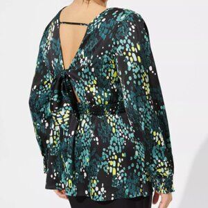 Torrid Satin Surplice Tie Cut Out Back Long Sleeve Blouse Sz3