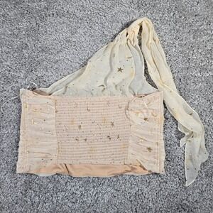 Torrid Shirt Womens Large Cream Chiffon One Shoulder Crop Top Star Moon Clusters