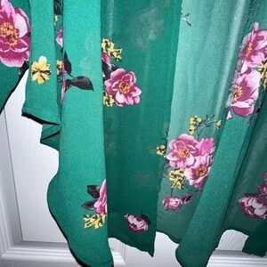 Torrid Size 1/2 Green Floral Duster – Dark Pink Flowers, Flowy & Open, 3/4 Sleev