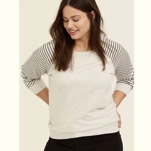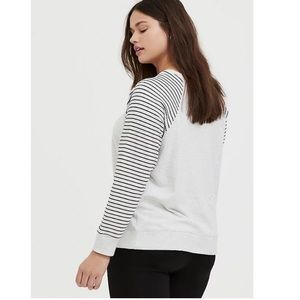 Torrid Size 5X Light Grey FLEECE & STRIPE RAGLAN SWEATSHIRT