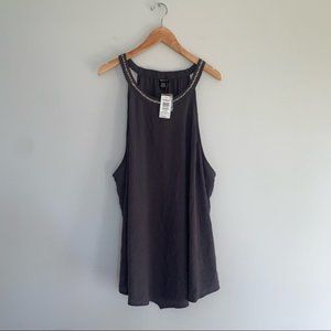 Torrid Sleeveless Blouse Size 5XL Grey Embellished Neck Crepe Halter Tank Top